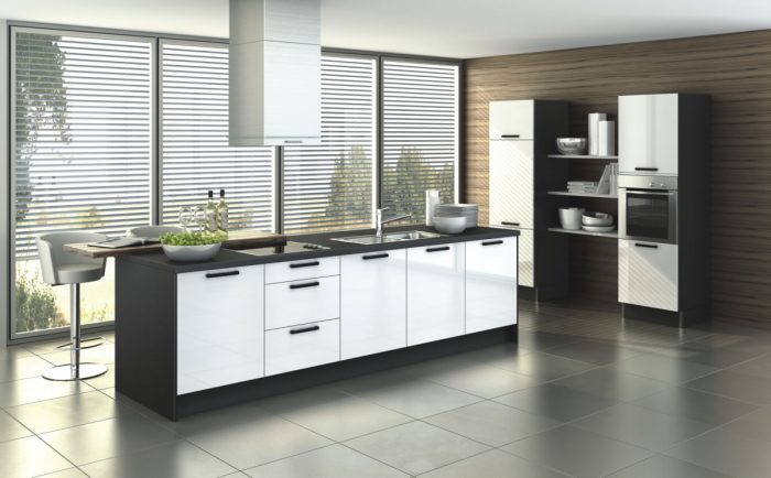 Lacado alto brillo con cantos ligeramente redondeados, nuestros muebles de cocina del modelo FARO están fabricados con una laca de alta resistencia.