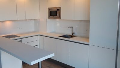 Cristal impreso y blanco alto brillo sin tiradores Nuestro modelo LASSER destaca por en su acabado alto brillo. Se trata de un material laminado muy resistente al uso diario y de muy fácil limpieza. La técnica láser se aplica al corte del canto, gracias a esta técnica se consigue una transición prácticamente invisible consiguiendo que el frente