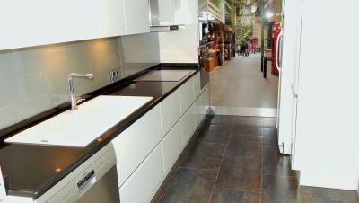 Muebles de cocina laser, acabado impecable. Nuestro muebles de cocina LASER destaca por su acabado mate (soft) y tacto sedoso. Se trata de un material laminado muy resistente al uso diario y de muy fácil limpieza. La técnica laser se aplica al corte del canto, gracias a esta técnica se consigue una transición prácticamente invisible consiguiendo que el