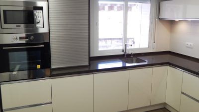 Muebles de cocina en color magnolia. La óptica de la madera y el suave color magnolia combinados con encanto, enmarcan un conjunto dispuesto según los propios deseos, la satisfacción se abre paso y el rincón del cocinero se convierte en el lugar preferido. Ismael ha elegido nuestro modelo NEO, es un estratificado en acabado brillante,