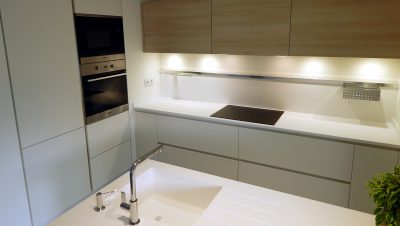 Mueble de cocina, lacado cantos rectos. Os presentamos, en este nuevo montaje, nuestro modelo 3020. Es un lacado en alto brillo, con cantos rectos. Disponible en una amplia gama de colores, en este caso en blanco alto brillo. El exclusivo sistema de sellado de los cantos garantiza un acabado perfecto y duradero. En esta instalación Soraya y